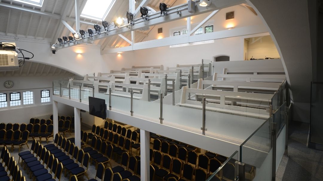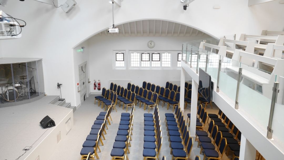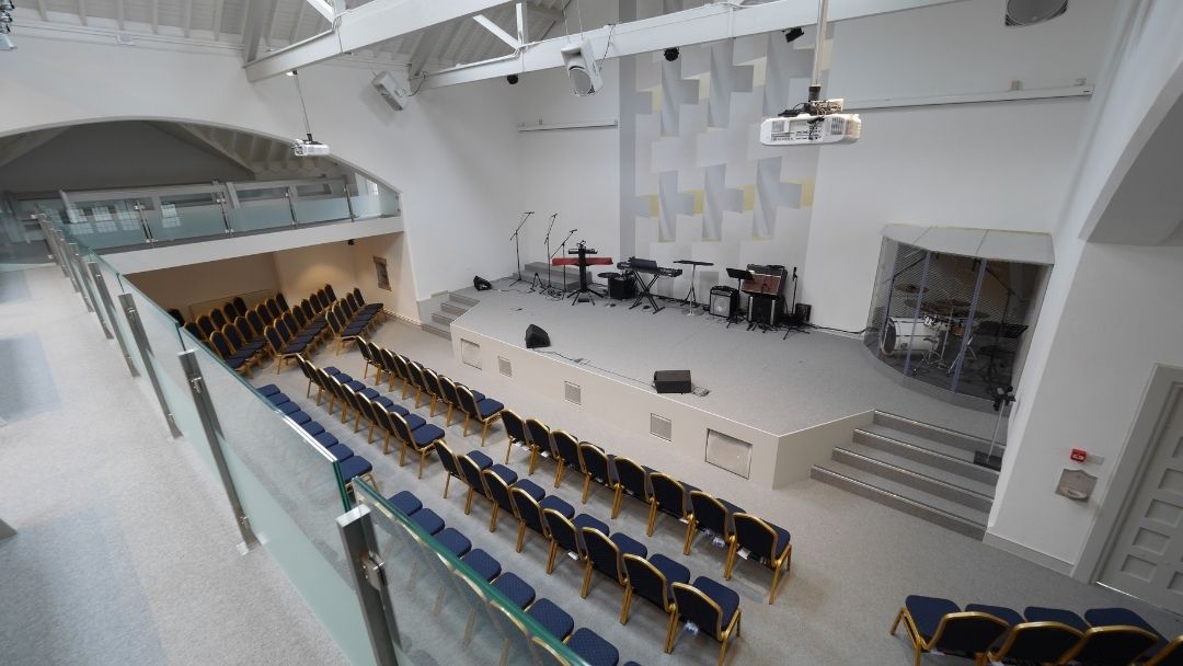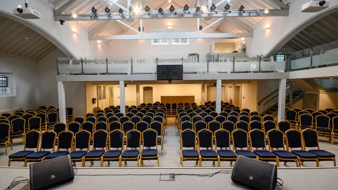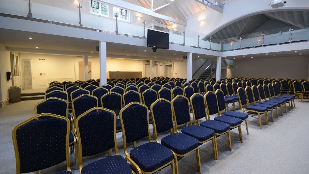 The main Hall is a large seated and modern meeting room with 2 balconies and can hold up to 250 people.