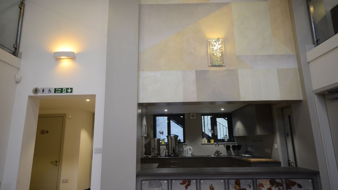 We have two large meeting spaces, and small meeting rooms. They are all modern, high quality, accessible community spaces, suitable for small or large groups. A kitchen is easily accessed on ground floor, as well as toilets, baby changing facilities and disabled access to various parts of the building.